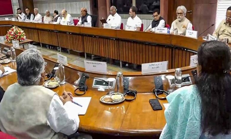 रक्षा मंत्री राजनाथ सिंह की अध्यक्षता में हुई बैठक में सभी दलों ने सरकार के साथ एकजुटता की बात कही