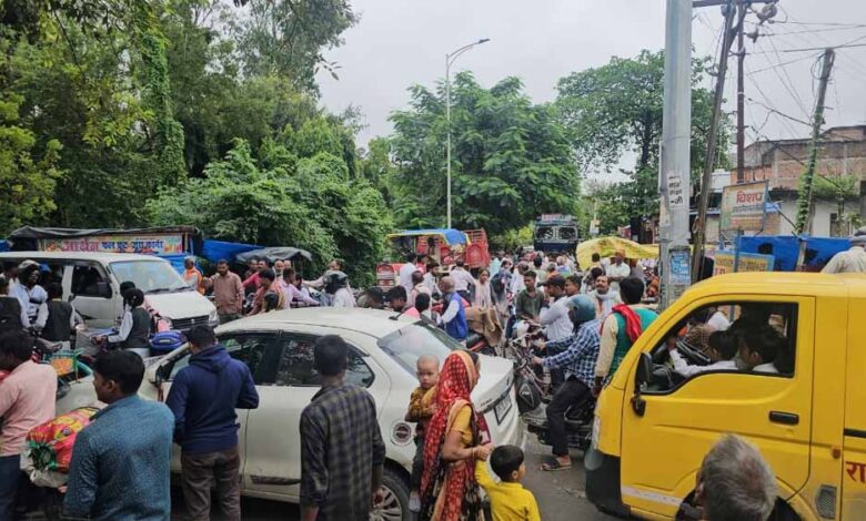 खड्डा नगर पंचायत में जाम की मार: रानी लक्ष्मी प्रतिमा के पास अवैध सब्जी मंडी से बढ़ी मुसीबत