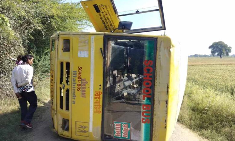 बेकाबू स्‍कूल बस पलटी, 15 छात्र-छात्राएं घायल